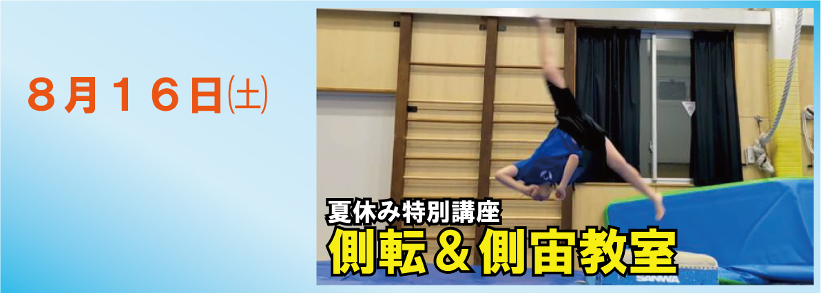 当日は側宙の基礎から側宙を行う上で必要なストレッチ、トレーニング方法なども少人数制レッスンで伝授いたします!!